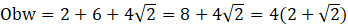 Wyznacz sumę wszystkich boków opisanego trójkąta prostokątnego, o polu równym