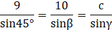 Wskaż wszystkie długości boków i miary kątów trójkąta ABC, jeśli wiadomo że a = 9, b = 10, α =