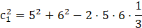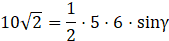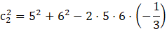 Wyznacz cosinus kąta między bokami a = 5 i b = 6 i długość boku c, jeśli pole tego trójkąta wynosi