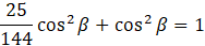 Wyznacz sin β, wstawiając wartość cosinusa do wcześniejszej równości.