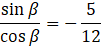 β ∈ (-90°; 0°), więc wartość jego cosinusa musi być dodatnia; zatem warunki zadania spełnia: