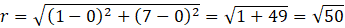 Długość promienia to odległość środka okręgu od początku układu współrzędnych: