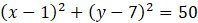 Dany jest punkt (1,7), który jest środkiem pewnego okręgu. Wiadomo, że okrąg ten zawiera w sobie początek układu współrzędnych. Podaj wzór w postaci kanonicznej tego okręgu.