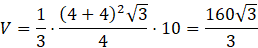 Spójrz na rysunek. Wiedząc, że podane na rysunkach bryły są prawidłowe, mają wysokość równą 10 oraz odcięte części brył są podobne do całości bryły, oblicz objętość zacieniowanej bryły.