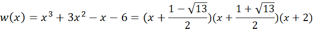 Znajdź pierwiastek całkowity wśród dzielników wyrazu wolnego tj. -6, -3, -2, -1, 1, 2, 3, 6.