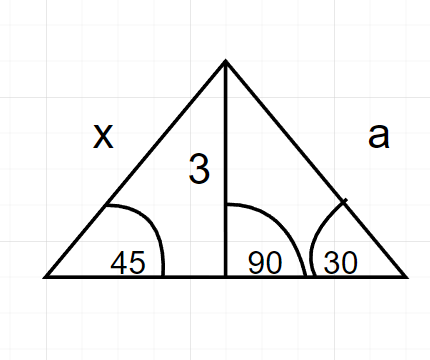 Dla x wykorzystaj własności trójkąta 45, 45, 90.