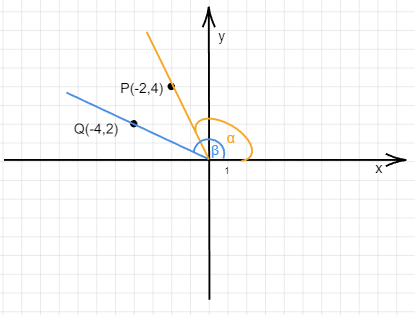 Narysuj wykres i zaznacz na nim kąty α i β wraz z punktami P (-2, 4), Q (-4,2).