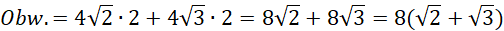 Skorzystaj ze wzoru na pole równoległoboku i wyznacz długości przekątnych: