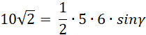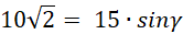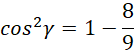 Oblicz cosinus kąta γ, skorzystaj z jedynki trygonometrycznej: