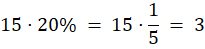 W pierwszej kolejności oblicz wartość 20% z liczby 15. Następnie zapisz równanie z definicji procenta: x procent liczby 8 jest równe 3, czyli