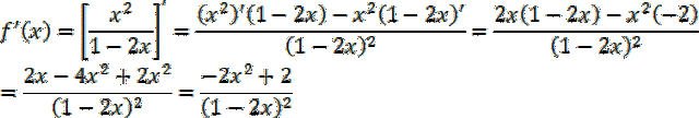 Najpierw wyznacz dziedzinę funkcji, wiedząc, że wyrażenie w mianowniku jest różne od zera, a następnie wyznacz jej pochodną, korzystając z własności