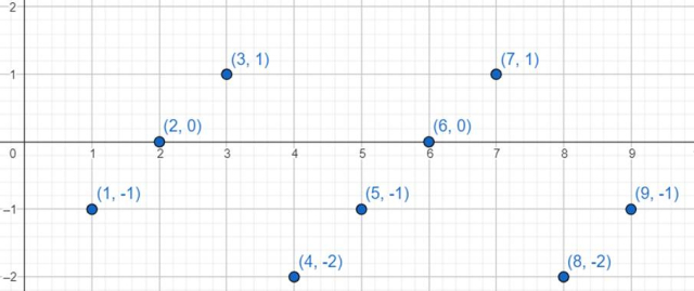 przyporządkujemy resztę z dzielenia tej liczby przez 4 pomniejszoną o 2.