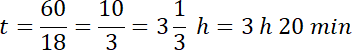Ustal, ile czasu zajmie rowerzyście pokonanie całego dystansu mającego długość 60 km, jeśli będzie jechał z prędkością 18 km/h.