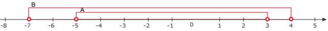 - wszystkie elementy, które znajdują się jednocześnie w obu zbiorach A i B. Na koniec zapisz ile liczb całkowitych należy do podanego zbioru.