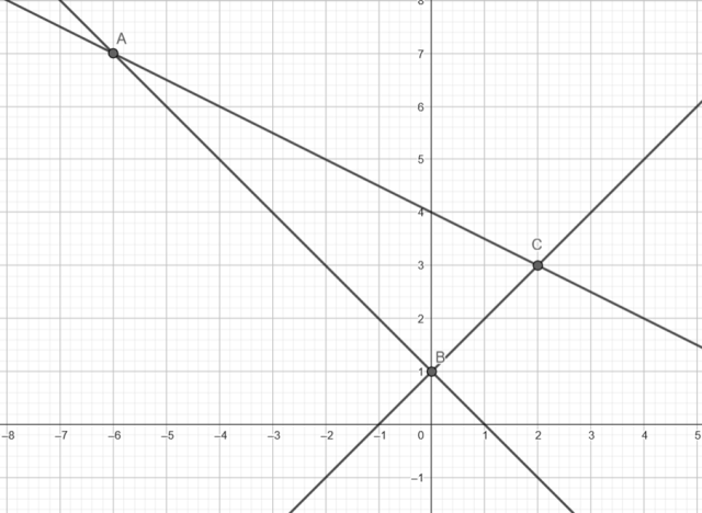 W układzie współrzędnych zaznacz punkty ABC i poprowadź proste, które przez nie przechodzą.