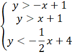 Wyznacz układ nierówności opisujący zbiór punktów leżących wewnątrz trójkąta ABC, jeśli A(-6,7), B(0,1), C(2,3).