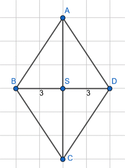 Ze wzoru na pole rombu wyznacz długość drugiej przekątnej. Następnie skorzystaj z twierdzenia Pitagorasa w trójkącie ABS i na tej podstawie oblicz długość boku tego rombu.