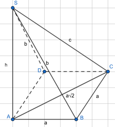 Wyznacz pole powierzchni całkowitej ostrosłupa ABCDS, którego podstawą jest kwadrat ABCD, a krawędź boczna AS jest jego wysokością, jeśli wiadomo, że jest ona równa 3, a krawędź podstawy ma długość 4.