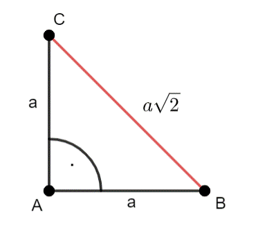 –w pierwszym kroku narysuj dwa odcinki o długości a, które są prostopadłe do siebie, oznacz odcinki: |AB| = a i |AC| = a, a następnie połącz punkt B i C–będzie to odcinek a√2
