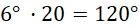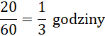 Wskazówka minutowa, przesuwając się o jedną minutę, obraca się o 6°. Wskazówka godzinowa przesuwając się o jedną godzinę, obraca się o kąt 30°. 20 minut to