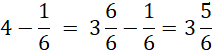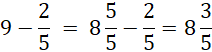 W pierwszej kolejności zamień jedną całość na ułamek. Pozostałe całości pozostawiasz bez zmian. Gdy odejmujesz ułamki o jednakowych mianownikach, musisz odjąć od siebie liczebniki, a mianownik pozostawić bez zmian.