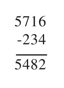 sprawdzenie: 5482 + 234 = 5716.