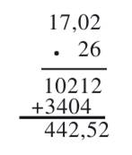 W pierwszym kroku pomnóż liczbę dziesiętną i naturalną sposobem pisemnym, czyli zapisz liczby tak jak w przypadku mnożenia pisemnego. Wykonaj je, a przecinek w wyniku zapisz, w tym samym miejscu, w jakim znajduje się w liczbie dziesiętnej.