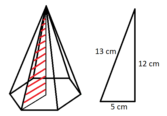 Znamy jedną przyprostokątną trójkąta – jest ona krawędzią podstawy ostrosłupa i ma 5 cm. Znamy też przeciwprostokątną trójkąta – jest ona krawędzią boczną ostrosłupa i ma 13 cm. Z twierdzenia Pitagorasa obliczymy brakującą przyprostokątną, czyli wysokość ostrosłupa.