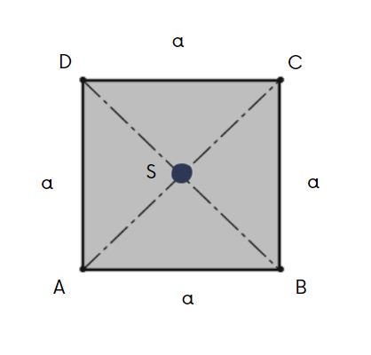 Narysuj kwadrat o boku, w którym przekątne przecinają się w punkcie S. Zapisz wyrażenie algebraiczne, które pozwoli na opisanie wysokości trójkąta o wierzchołku S.