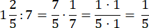 Aby wykonać to dzielenie, należy liczbę mieszaną zamienić na ułamek niewłaściwy i pomnożyć przez odwrotność liczby.