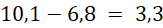 Oblicz różnicę liczb 10,1 i 6,8.
