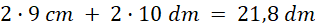Policz obwód prostokąta, w którym: długość jednego boku w centymetrach jest największą liczbą jednocyfrową, a długość drugiego, podana w decymetrach, jest najmniejszą liczbą dwucyfrową.