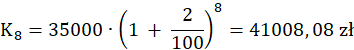 W tym zadaniu musisz obliczyć, ile wyniesie suma odsetek lokaty rocznej z oprocentowaniem równym 2% po 8 latach, na którą wpłacono 35000 zł.