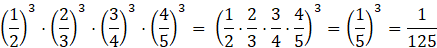 Jeżeli mnożysz potęgi o różnych podstawach, ale tym samym wykładniki potęgi – możesz podstawy zapisać w nawiasie, a poza nawiasem potęgę. Oblicz wtedy najpierw nawias, a dopiero potem potęgujemy.