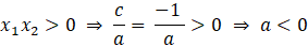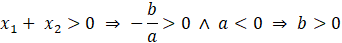Aby wyznaczyć współczynniki równania, na początku skorzystaj z własności f(0) = -1, z której wynika wartość współczynnika c (-1 <0). Następnie skorzystaj ze wzorów Viète’a – oba miejsca zerowe są sobie równe, więc ich iloczyn zawsze jest dodatni, a ponieważ x1 > 0, x2 również, więc ich suma jest dodatnia. Ze wzoru na iloczyn miejsc zerowych wynika zależność: