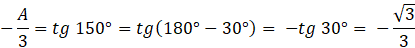 Aby obliczyć brakujący współczynnik, przekształć równanie prostej do postaci kierunkowej. Następnie wyznacz wartość współczynnika kierunkowego i przyrównaj ją do tangensa kata 150°. Z otrzymanego równania oblicz wartość A.
