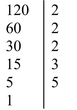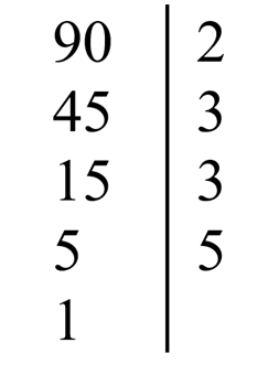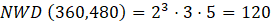 NWD (90, 120) = 2 ∙ 3 ∙ 5 = 30