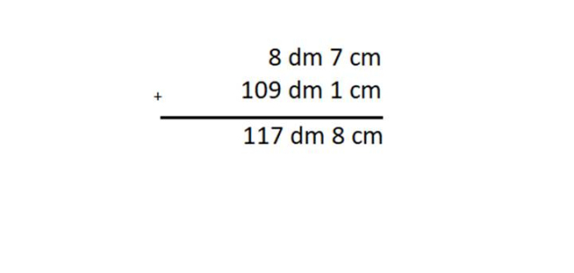 W tym zadaniu musisz wykonać dodawanie: 8 dm 7 cm + 109 dm 1 cm.