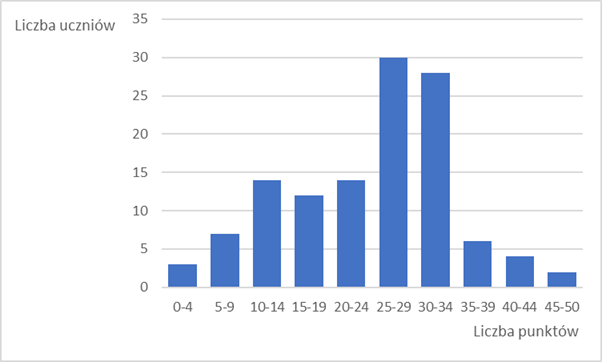 Utwórz diagram kolumnowy. Na osi poziomej umieść liczbę punktów, natomiast na osi pionowej liczbę uczniów.