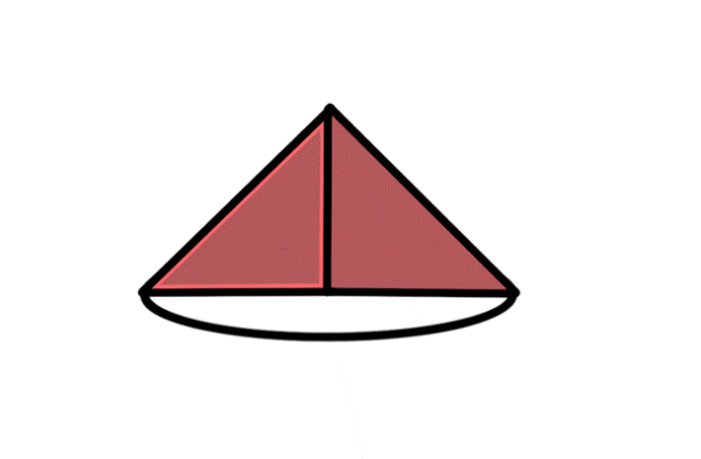 Narysuj trójkąt równoramienny, a następnie zaznacz ramię, wokół którego wykonano obrót. Narysuj bryłę obrotową, wyobrażając sobie, że zaznaczony bok tkwi nieruchomo w miejscu, a cała figura obraca się wokół niego.