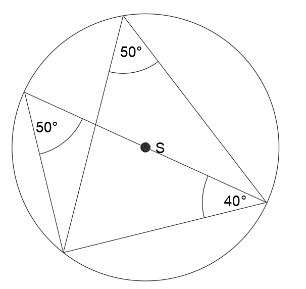 W tym zadaniu wpisz miary zaznaczonych kątów, wiedząc, że punkt S jest środkiem okręgu.