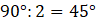 W tym zadaniu musisz narysować kąt 2 razy mniejszy od kąta prostego, który ma miarę 90°.