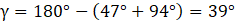 Musisz policzyć miarę trzeciego kąta.