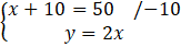 Z pierwszego równania łatwo wyznaczyć x, który wynosi 40. A następnie do drugiego równania podstawić 40 za x.