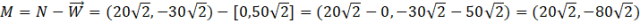 Na samym początku musisz stworzyć równanie ze wzoru na długość wektora, następnie podstawić 0 pod współrzędną x, ponieważ wektor jest równoległy do osi OY. Poprawną wartością jest 502, ponieważ zwrot wektora jest skierowany w górę, co oznacza, że musimy się przesunąć na wykresie o 502 jednostki w górę, czyli odjąć tę wartość, ponieważ cofamy się z końca do początku wektora. Na sam koniec musisz odjąć wektor W do punktu N (pamiętając, że minus z minusem daje plus), aby otrzymać punkt M znajdujący się na początku tego wektora.