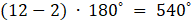 Wyznacz sumę miar kątów wewnętrznych: dwunastokąta foremnego.