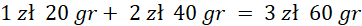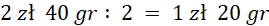 Aby obliczyć kwotę wydaną na zakupy, musimy podzielić cenę za 1 kg jabłek, na 2, aby dowiedzieć się, jaka jest cena za pół kilograma. Następnie dodajemy do otrzymanego wyniku cenę za jeden kilo gr am.