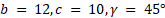 Rozwiąż trójkąt, w którym długości boków i miara jednego z kątów są znane, przy założeniu, że pozostałe kąty nie są większe niż 90°. Dane są
