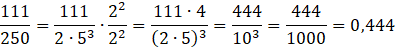 To zadanie powinieneś rozpocząć od zamiany mianownika na potęgę iloczyn potęg 2 i 5. Następnie musisz przemnożyć licznik i mianownik przez 2 do takiej potęgi, aby dwójka w mianownika miała ten samy wykładnik co 5. Po wykonaniu iloczynu musisz zamienić ułamek zwykły na dziesiętny.