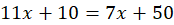 Oznacz szukaną jako x. Przyrównaj wagę jedenastu batonów i odważnika 10 dag do wagi siedmiu batonów i odważnika 0,5 kg, a następnie rozwiąż otrzymane równanie: